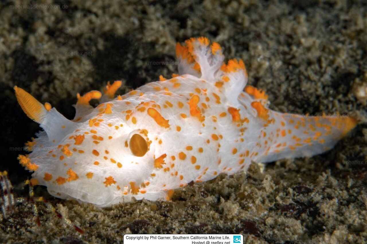 Triopha modesta has both flat and branching tubercles and globular bits on their side. The Clown nudibranch feed exclusively on bryozoan.
