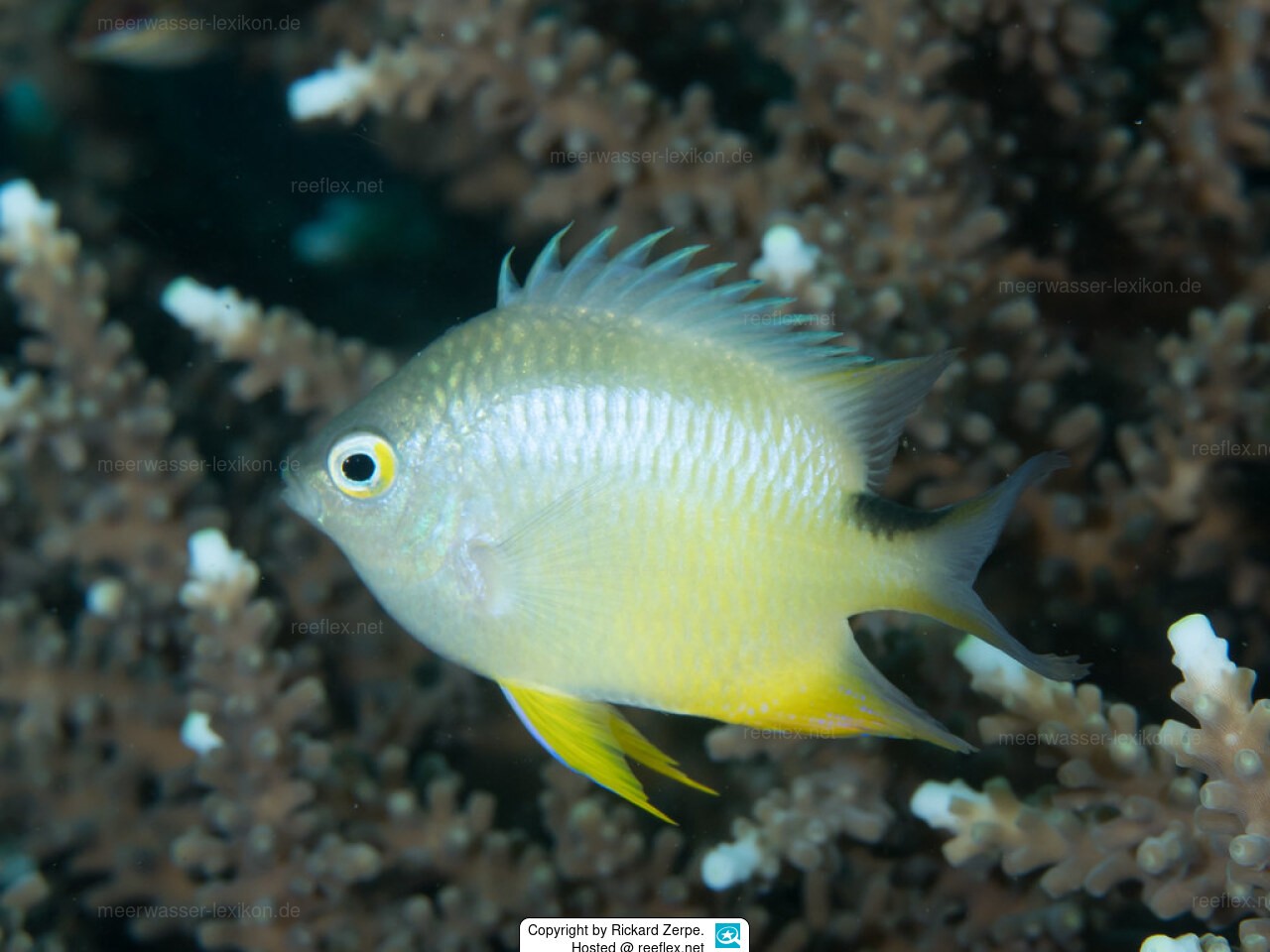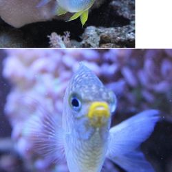 They spawn in groups and each pair claims a small section of the reef. Eggs are laid on a cleared section of the coral and guarded by the parents. Common among coral-rich areas of sheltered coastal reefs.