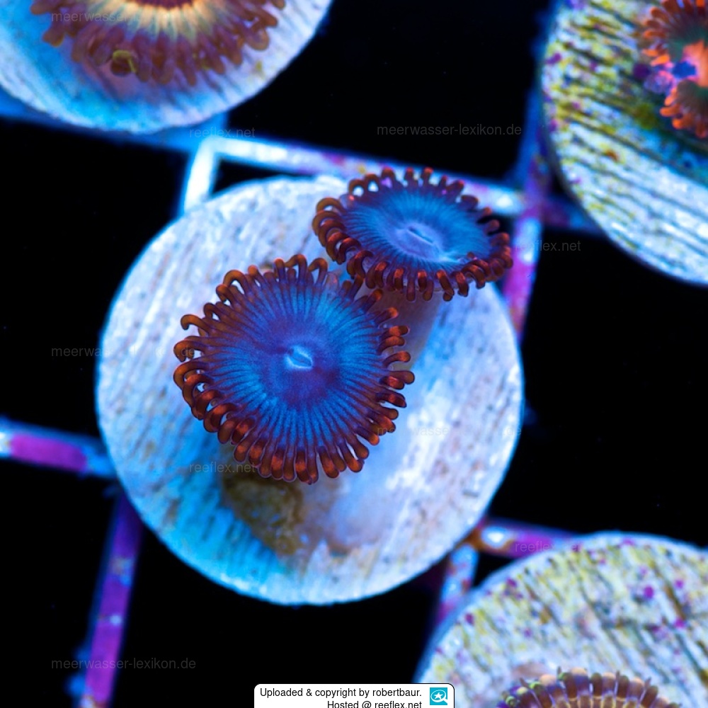 These beautiful Zoanthid or button polyps are sold as Zoanthus „Blue Curacao“ at Local fish Dealers and in online coral Shops. Many Thanks by Cherrycorals for the wonderful Picture.