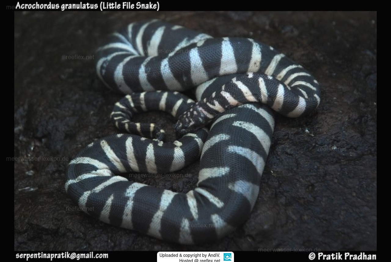 Classification: Biota > Animalia (Kingdom) > Chordata (Phylum) > Vertebrata (Subphylum) > Gnathostomata (Superclass) > Tetrapoda (Superclass) > Reptilia (Class) > Squamata (Order) > Serpentes (Suborder) > Alethinophidia (Infraorder) > Acrochordidae (Family) > Acrochordus (Genus) > Acrochordus granulatus (Species)
