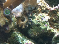 Nun obwohl diese Schnecken bekannter Weise Krustenan. fressen, sind sie nicht sofort an die Protopalythoas gegangen, sondern kümmerten sich erstmal um zwei kleine Kollonien Palythoas.